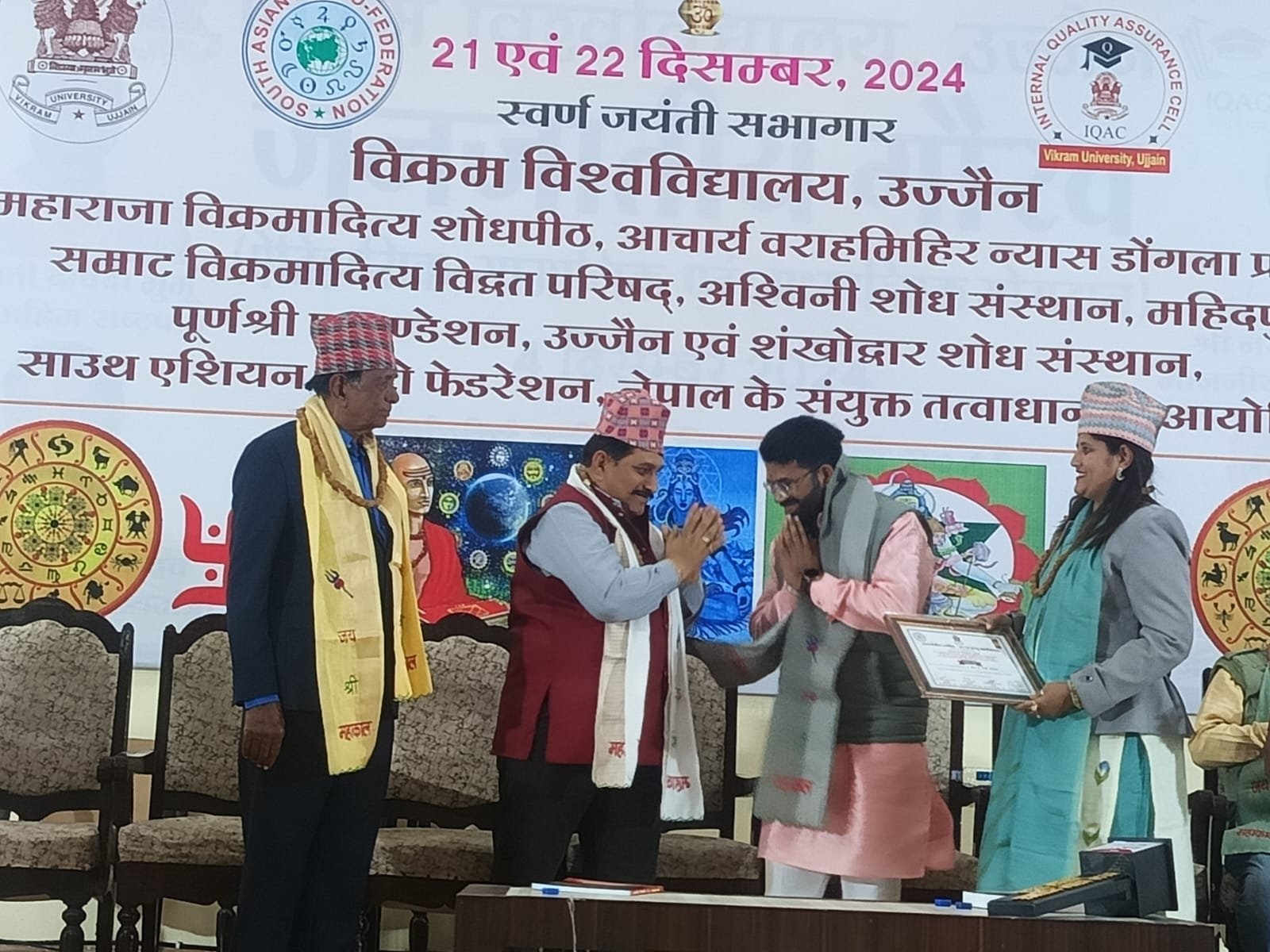 पंडित सौरभ त्रिपाठी अंतरराष्ट्रीय ज्योतिष महाधिवेशन में सम्मानित
