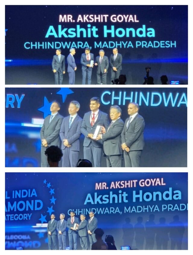 छिंदवाड़ा के लिए गर्व की बात है कि एक बार फिर अक्षित होंडा ने राष्ट्रीय स्तर पर अपनी सफलता की चमक बिखेरी है। bussiness Partner award 2025 के आयोजित वार्षिक मूल्यांकन में अक्षित होंडा को पेन इंडिया नंबर 1 डीलर के खिताब से नवाजा गया है।
